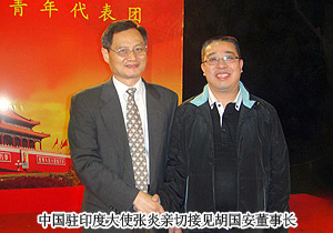 2010年11月15日—25日,应印度青年事务与体育部的邀请,以共青团中央书记处书记卢雍政为团长的百人中国青年代表团访问印度。代表团成员共有100人,包括团中央、各部委、各省市和部门的团委负责人,文化、教育、新闻界青年代表、青年企业家等。中国优秀民营企业家、湖南省优秀青年企业家、mk网董事长胡国安应邀随中国青年代表团同行,并受到中国驻印度大使张焱的亲切接见。
