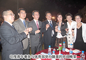 24日晚上,中国驻印大使馆在使馆内举行招待会为代表团送行并庆祝活动圆满成功。中国驻印度大使张炎在招待会上表示,中印百人青年代表团互访活动是由两国领导人达成的一项共识,是两国青年开展交流、互相学习,增进友谊与合作的重要平台,为两国友好合作做出了重要贡献。张炎大使还介绍了近年来中印两国关系不断发展的情况,并表示青年是中印友谊的未来,他希望通过此次访问能进一步加强中印两国青年之间的交流与合作。