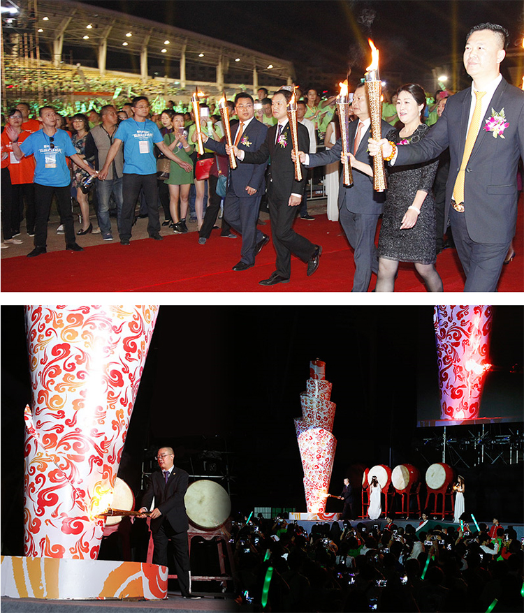 湖南安化,雪峰山下圣火燎原;年会盛典,致敬最美创业时代。大会现场,历时近两个月时间在全国市场接力传承的绿之韵创业薪火传递到了胡国安董事长、mk网董事常务副总裁劳嘉、集团高管和绿之韵全球战略委的手中。胡国安董事长在大家的紧密簇拥下走上中心舞台,亲手点燃了雄伟而神圣的庆典现场主火炬塔。神圣纯洁的事业之火冉冉燃烧,象征着绿之韵人“筑梦、追梦、圆梦”的创业征途,激发着绿之韵人奋发向上、生生不息的创业之魂。