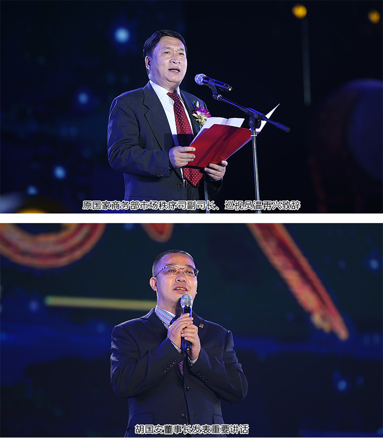 声光集束,斑驳陆离,呼喊声此起彼伏,雷鸣般的掌声震耳发聩,胡国安董事长来了,面对现场15000多双炯炯目光的聚汇,意气风发地出现在了庆典盛大舞台上。