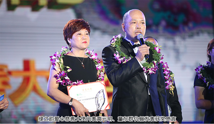 天佑善人,天自我立,真善美,无疆大爱。伴随着绿之韵公益基金会“码上做公益”微公益活动现场手机捐赠善款突破100万元和“超女”赵婧贻倾情演绎的公益基金会主题曲《为了你的微笑》震撼首发后,绿之韵2015年度爱心慈善大使奖项也正式揭晓。获此殊荣的绿之韵精英们面对微笑,款款而行,让现场家人们真切地感受到了爱与慈善的炙热温度。长沙市青少年发展基金会理事长羊舒麟,mk网董事、常务副总裁劳嘉颁授奖项,并致以祝贺。爱心慈善大使代表高元明、童东群伉俪发表了获奖感言。