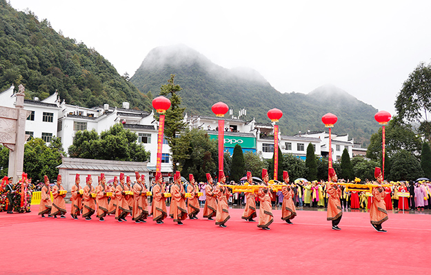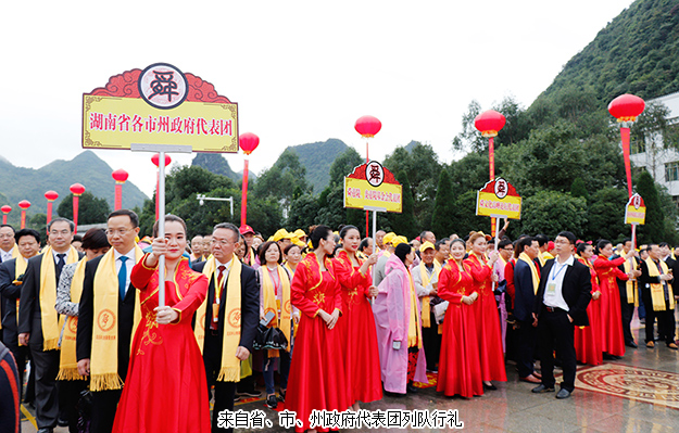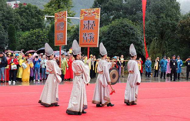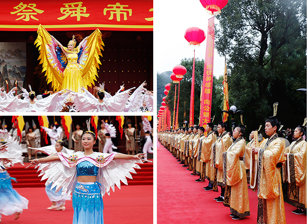 从2005年开始第一届,2009年、2012年和2015年先后四次举行湖南省公祭舜帝大典。三年一祭,本届公祭舜帝大典共分为三大仪程展示。龙狮欢腾,唢呐高奏,瑶家阿哥阿妹,唱着迎客山歌,跳着瑶族长鼓,敬献瓜箪酒,百人腰鼓队敲打着激越的鼓点,迎接前来祭祀的宾客,仪式中无一不展现出宁远人热情好客的民情风俗。