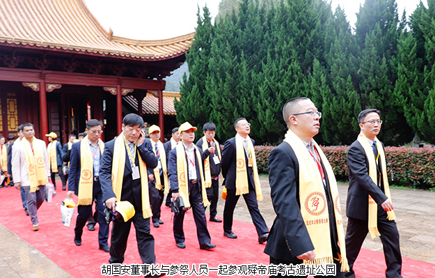 祭典仪式结束以后,胡国安董事长陪同领导、嘉宾们一起参观考察舜帝庙考古遗址公园 。他表示:中华之魂,民族之灵始于舜帝。泱泱大中华,上下五千年的文明,由舜帝教化传扬。公祭舜帝,不仅有利于舜帝精神文化的传播弘扬,更有利于增强中华民族的认同感、民族凝聚力,有利于促进祖国的团结统一,是每一位中华儿女都应承担的责任,以舜之名,爱我大中华。