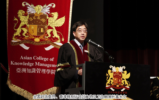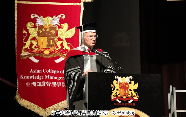 此次典礼分为荣誉资格颁授及奖项颁授两部分,在全场起立奏唱国歌中揭开序幕,随后进行薪火相传仪式,以代表承先启后,继续传承知识的传播精神。加拿大特许管理学院院长亚瑟·汉米敦教授、全国政协委员、香港特别行政区食物及卫生局局长高永文分别在典礼上致辞发言,对来自本地以至海外的学术界、商界及政界,对社会均有所贡献,并在知识管理界担当领导角色的社会精英颁授荣誉资格,并鼓励企业家们不断求新、学习新知识、提升竞争力,以抗衡新经济时代的来临,在新时代中脱颖而出。