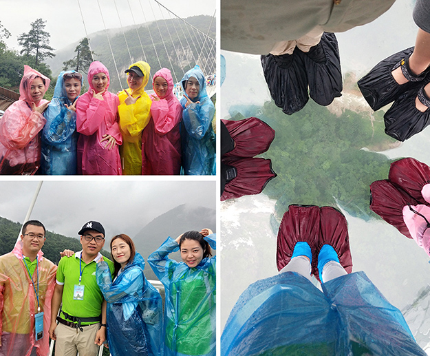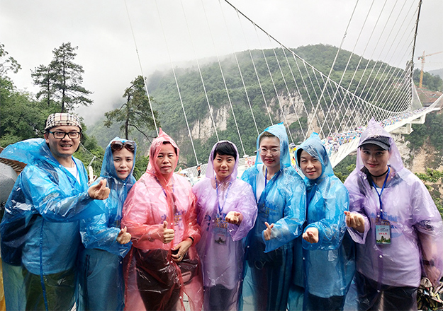 集山、水、洞、峡、桥、瀑于一身的张家界大峡谷,绿之韵营销精英们在这里挑战世界最高最长首座斜拉式高山峡谷玻璃桥——“云天渡”,细雨蒙蒙,漫步天上人间,别有一番滋味,带着一颗感恩的心,从这头走到那头、走过青丝到白发,感受桥的刺激、湖的清澈、山的倒蘸、水的秀丽、情的温柔,真正做到超脱尘世、忘却人间。