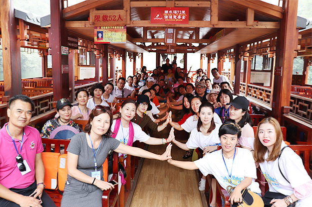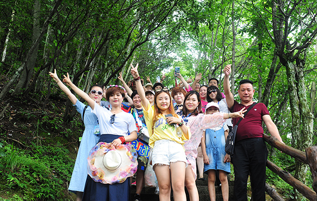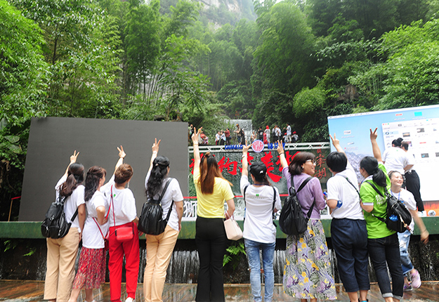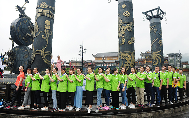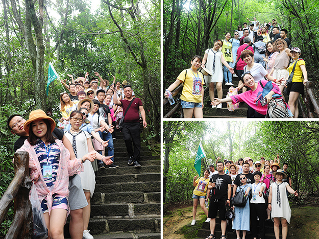 在电影《阿凡达》山峰原型-袁家界景区、“世界峰林之王”——天子山景区、十里画廊,绿之韵营销精英们深深为那不着雕饰的原始生态的自然美、饱经风霜的沧桑美、积淀厚重的文化美所吸引,所感动,所震撼。千峰穿云高耸,万顷松杉葱茏,石林百态千姿,幽谷碧水淙淙。进入景区,绿之韵营销精英们统一乘坐“世界第一梯”百龙天梯上山。百龙天梯气势恢宏,因其“世界上最高、运行速度最快、载重量最大的电梯”而被载入吉尼斯世界纪录。家人们乘电梯以5米/秒的速度上山,慷慨科技进步的同时,惊叹于张家界的高山绝景和大自然的鬼斧神工。虽是炎炎夏日,山上微风徐徐,风景如画,绿之韵家人们先后游览了御笔峰、仙女散花、贺龙公园、天子阁、贺龙铜像、贺龙墓、西海峰林等自然奇景,感受淳朴的民情和苗家奇特的民俗,品尝独具风味的民族食品。拾级而上,相互鼓励,跨越过七千多级台阶,走完了全程。一路上,留下了绿之韵人的坚毅脚步和欢声笑语!