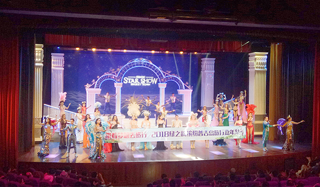 演出最后,旅行团还为家人们准备了一个特别的惊喜。在演员们纷纷上台谢幕时,舞台上拉出了“带着梦想去旅行——2018绿之韵缤纷普吉岛旅行嘉年华”的横幅,绿之韵家人们纷纷被这一荣耀专属时刻所感动,掌声、尖叫声雷动。
