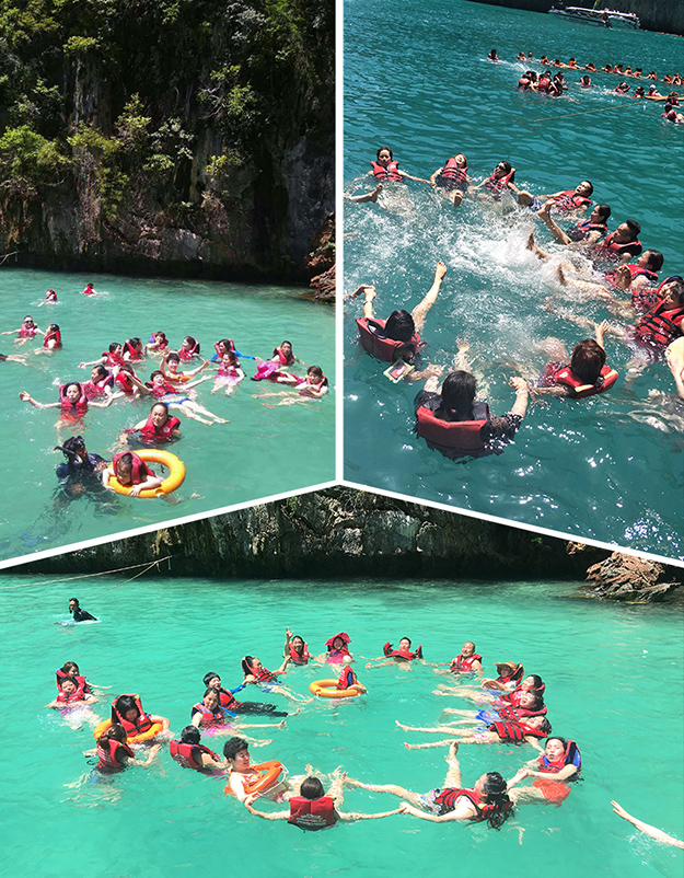 泰国普吉岛被誉为安达曼海的明珠,有着“珍宝岛”、“金银岛”的美称。在这六天的缤纷之旅中绿之韵营销精英们充分感受了普吉岛芳香馥郁、通体舒畅的泰式精油SPA,观看了精彩纷呈的西蒙人妖秀,体验了海底浮潜、海上降落伞、摩托艇等丰富的海上项目,参加了盛大的泼水狂欢……