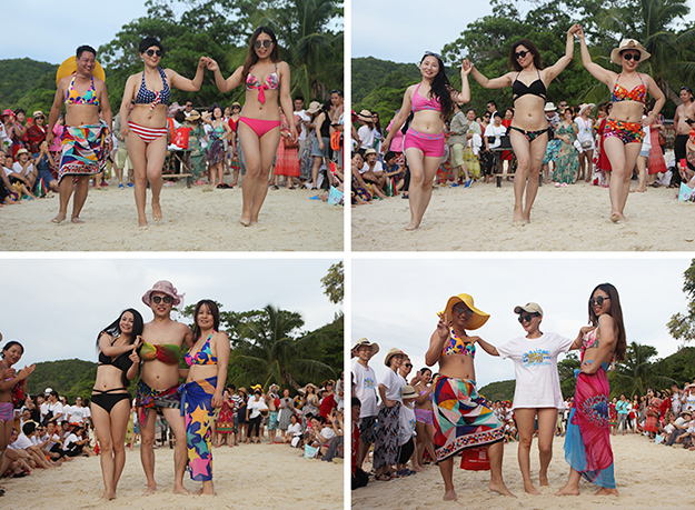 身处珊瑚岛,如果不来一场热辣的比基尼秀那可真是人生一大憾事了。家人们穿着最靓的泳衣展示着傲人的身材,自信又活力。如果说女生们在沙滩秀上展露的是完美的身姿的话,那男生们的反串泳装秀那就是相当的“火辣辣”了,辣眼的造型一出场就惹得现场围观群众呐喊助威、掌声连连,为了胜利家人们也是拼了。