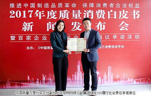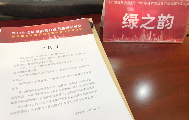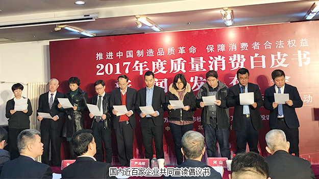 2018年3月10日,由《中国质量万里行》杂志社、中国质量万里行投诉平台主办的“2017年度质量消费白皮书新闻发布会暨百家企业履行社会责任倡议承诺活动”在北京举行。国家质检总局执法督查司司长严冯敏,中国质检报刊社社长谷旭,中国法学会消法研究会会长河山,中消协原副秘书长武高汉,中国质检报刊社副社长兼副总编辑李本军,国家日用电器质量监督检验中心副主任刘国荣,《中国质量万里行》杂志社社长汪鹤林、副社长王黎明等出席发布会。mk网总裁助理蒋文代表集团公司受邀参会。