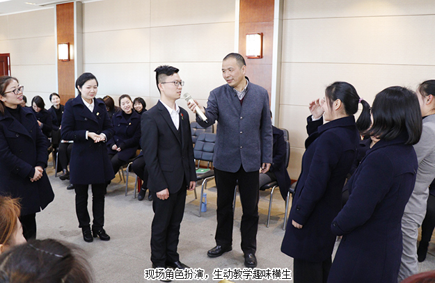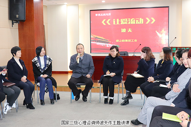 在认真学习了吴晓红老师爱岗敬业的精神后,我们迎来了国家二级心理咨询师波夫老师《让爱流动》的心理培训课程。波夫老师凭借着专业的理论知识,丰富的教学经验,还有温和亲切的笑容,幽默风趣的语言,让枯燥的理论知识,在家人们的实地演练中幻化成了一个个妙趣横生的小故事,引得学员们笑声不断,将现场气氛推向高潮。