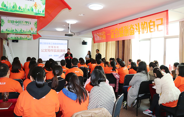 开班仪式上,mk网董事、总裁劳嘉发表培训动员讲话。她首先代表集团公司对受邀前来授课的行业专家、职场培训大师表示热烈的欢迎和衷心的感谢,并向全体参训学员们致以诚挚的问候和新年的祝福。十五年来,mk网在胡国安董事长的引领下,积极打造学习型企业和最具幸福感企业。从2014年至今,新春全员开年训已经持续开展了五个年头,今年的开年训是企业发展史上规模最大、人数最多、涉及下属企业最多的一次,是集团送给每一位绿之韵人的2018新年礼物。17个下属企业机构、300多名家人聚在一起,从专业培训,到实战演练、再到团队合作,这份丰盛的精神大餐,必将激发起绿之韵人的学习激情和逐梦力量。她希望,所有参训员工以“归零”的心态投入学习,拿出最充沛的精力和最饱满的热情,全身心融入到开年训的氛围中,将所学、所思、所感运用到以后的工作和生活;牢记企业发展使命,紧跟新时代发展步伐,充分发扬精耕细作的“工匠精神”,只争朝夕,锲而不舍,在新的一年里共同赢战2018,铸就新的事业辉煌。