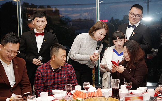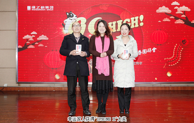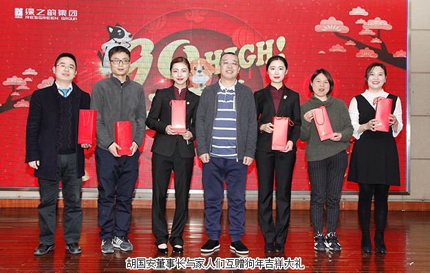 万众期待的抽奖环节让全场心弦紧扣。此次新春团拜会,集团公司全体员工准备了丰盛的奖品,大家观看着精彩节目,满怀信心与期待地参与每一次的抽奖。新春团拜会最后由胡国安董事长现场抽取惊喜现金大礼,为家人们送去好运与祝福。同时,在2018金犬福年到来之际,主持人代表全体绿之韵家人给胡国安董事长及其他几位幸运的家人献上本命年“红色”礼品,现场温情流动,将整场晚会推向最高潮。