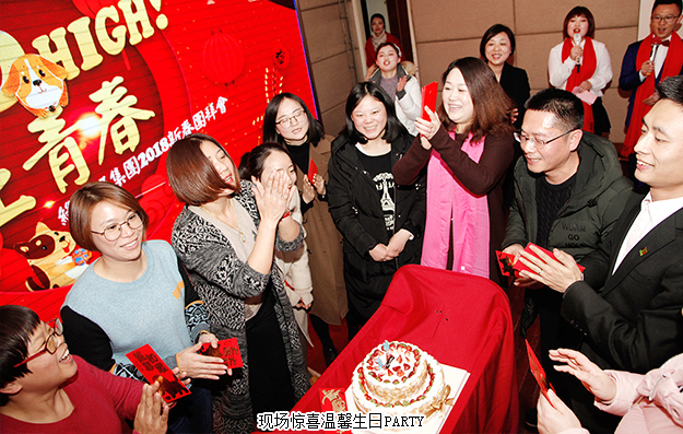 新年伊始山川秀,金犬初临日月长。晚上举行的mk网新春团拜会,公司各部门准备了精彩绝伦的节目,为汪年新春献上一道丰盛的文化视听盛宴:充满活力的少女团舞蹈、性感摩登的T台秀、清新可爱的《咖喱咖喱》、激情澎湃的歌曲《无乐不作》,幽默风趣的小品《白骨精三打孙悟空》,韵味十足的古典舞蹈《绒花》……现场家人们精彩真挚的表演,赢得了阵阵热烈掌声,把团拜会的气氛一次次推向高潮。尤其温暖的是晚会现场,公司还为二月份过生日的员工们准备了惊喜难忘的生日宴,全场共唱生日歌。绿之韵人亲密无间,载歌载舞,欢声笑语,热闹非凡。