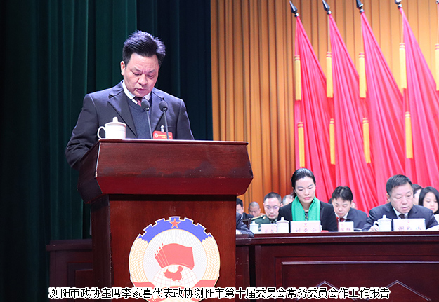 浏阳市政协主席李家喜代表政协浏阳市第十届委员会常务委员会作工作报告。市政协副主席谢建国主持大会并宣布开幕。李家喜从六个方面总结了过去一年市政协的工作。他表示,2017年是十届浏阳市政协的开局之年,在市委的坚强领导和长沙市政协的关心指导下,市政协常委会牢牢把握团结和民主两大主题,团结带领全体委员,以打造智慧政协、亲民政协、效能政协、活力政协为目标,认真履行政治协商、民主监督、参政议政三大职能,切实做好协调关系、汇聚力量、建言献策、服务大局各项工作,为浏阳经济社会发展作出了积极贡献。主要表现为:坚持正确方向,提高政治站位;坚持聚焦中心,助力改革发展;坚持统筹协调,加强经常性工作;坚持履职为民,服务发展大局;坚持团结联合,汇聚发展合力;坚持强本固基,提高履职能力。