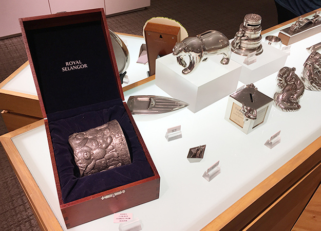 马来西亚是一个自然资源十分丰富的国家,是世界上最大的天然橡胶、棕榈油及锡的出产国,也是优质热带硬木、石及天然气的重要出产国。吉隆坡的锡器闻名于世,在众多品牌之中,最著名的就是皇家雪兰莪。它所生产的锡器不仅是日常生活用品,更多的产品已成为设计精巧的艺术品,行销到二十多个国家。绿之韵家人来到皇家雪兰莪锡器展示馆进行参观,了解它的历史与现在,感叹于能工巧匠的艺术作品。