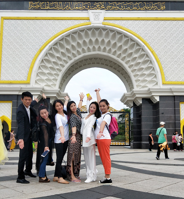 了解一个城市需要行走,需要驻足,更需要你与它亲密接触。太子城即布城,是马来西亚的联邦行政中心。布城在原马来语中象征欣欣向荣的理想城。这个“智慧型花园城市”保留着马来西亚的传统遗产精粹,其中至少三分之一的地区仍然保留着大自然的翠绿景色,林园、湖泊及湿地,是马来西亚珍贵的绿色瑰宝遗产。绿之韵家人们在这里驻足、合影,感受着马来西亚城市街头的气息。