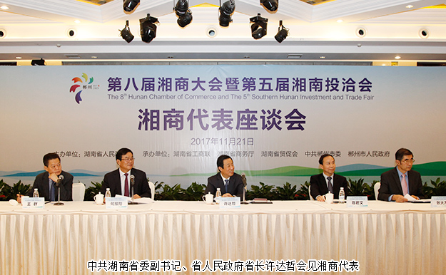 21日下午,中共湖南省委副书记、省人民政府省长许达哲会见了出席第八届湘商大会的湘商企业家代表以及世界500强等知名企业代表。他在与企业家代表的亲切交流中说道,希望广大湘商能不负新时代,实现新发展,进一步开拓眼界,志存高远,提升自身企业在产品、服务、生产等领域的智能化水平,努力成为行业标杆,成为行业标准制定者。他表示,湖南省委、省政府将以更开放的姿态、更优惠的政策、更优质的服务,大力鼓励、支持、引导非公有制经济发展,支持湘商创新创业,推动湘商合作,把湖南打造成广大湘商成就事业的宝地、创造财富的乐土、幸福宜居的家园,共同谱写中国梦的湖南篇章。