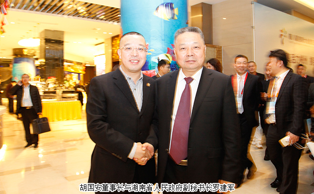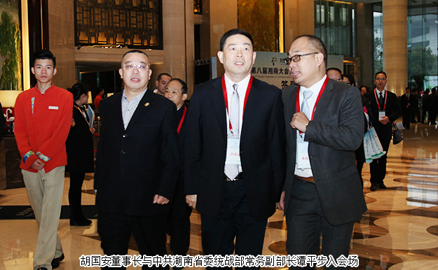 天下湘商聚郴州,携手共创新时代。2017年11月21-24日,2017湖南经济合作洽谈会暨第八届湘商大会、第五届湘南投洽会在湖南郴州隆重举行。中共湖南省委副书记、省人民政府省长许达哲,湖南省人大常委会副主任陈君文,湖南省人民政府副省长何报翔,湖南省政协副主席张大方,湖南省人民政府副秘书长罗建军,中共郴州市委副书记、市长刘志仁等领导出席活动。湖南省工商联(总商会)副会长、mk网董事长胡国安与蓝思科技董事长周群飞、华大基因董事长汪建、吉祥人寿董事长周涛、香港铜锣湾集团董事副总裁李济华等优秀企业家们一起应邀参加活动,与来自多家世界500强、中国500强、中国民营500强企业和海内外200多家湖南异地商会2000余名湘商精英齐聚郴州,纵论湘商发展大计。