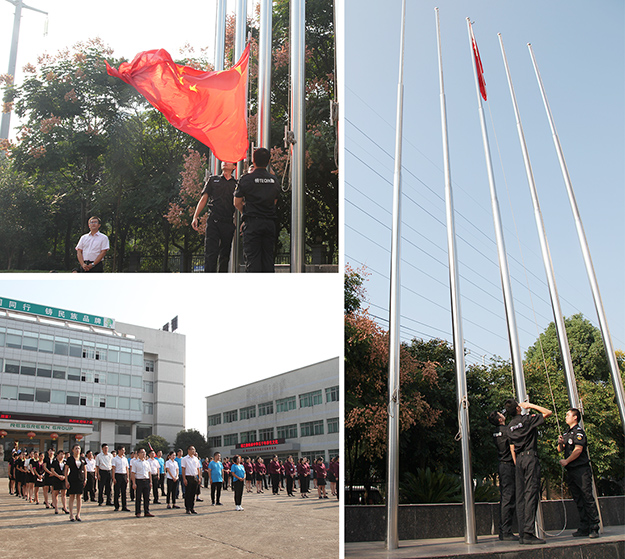 上午8点整,在庄严的气氛中,护旗手迈着矫健的步伐来到国旗台下。雄壮的国歌响起,护旗手振臂一挥,鲜艳的五星红旗冉冉升起、迎风飘扬,绿之韵全体员工肃穆而立,满怀崇敬之情向国旗行注目礼,送上了对祖国最美好的祝福。