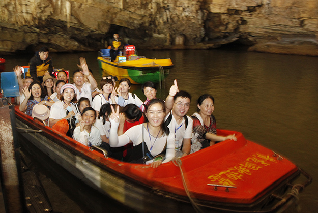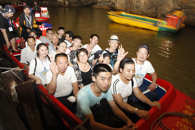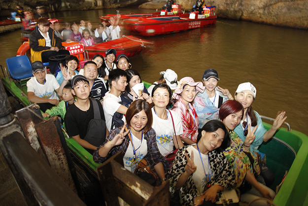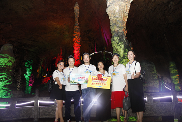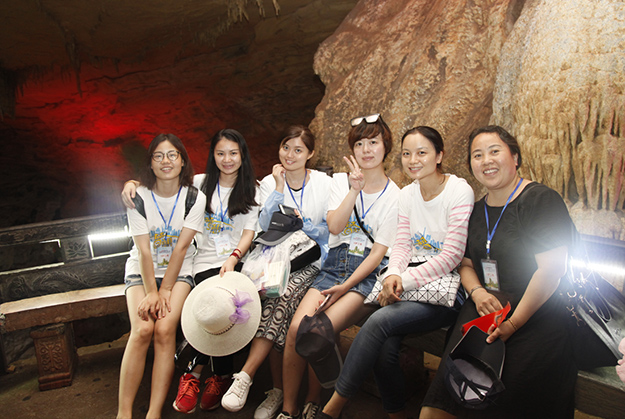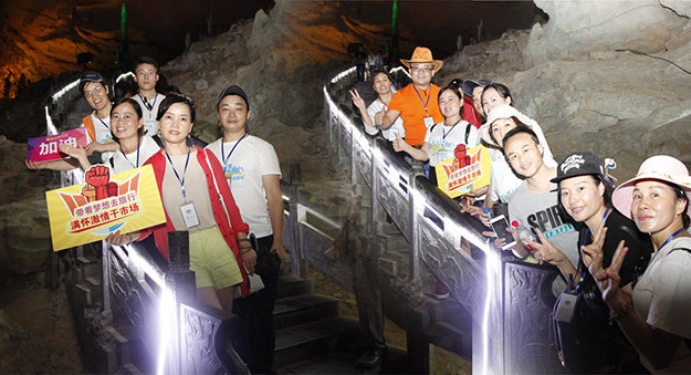 炙阳高照,黄龙洞自然空调带来的清凉是送给伙伴们的第一份礼物。黄龙洞是“世界溶洞全能冠军”,超过10万平方米的庞大洞穴空间,立体的洞穴结构,高大的洞穴瀑布,宽阔的龙宫厅及数以万计的石笋,仿佛一座神奇的地下“魔宫”。绿之韵家人们穿梭其中,无所不奇,无奇不有,深深陶醉在大自然神奇的怀抱里,惊叹不已。
