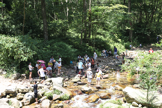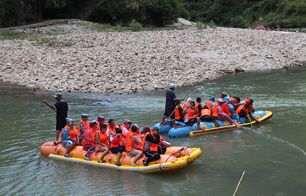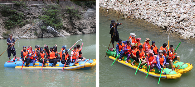 炎炎夏日,伙伴们对水的渴望更加强烈。张家界旅行的重头戏便是前往素有“天下第一漂”美誉的猛洞河漂流,感受与水搏斗的激情和清凉。从“哈妮宫”出发,顺水而下,一叶扁舟,在原始次生林的高山峡谷之中,绿之韵营销精英们身着救身衣、乘皮舟、闯险滩、博激流,沿途观美景、沐瀑流、打水仗、过峡关,出没浪端谷底,激情高涨之时,忍不住放歌长啸,戏水嘻闹,找回快乐童真的自我。
