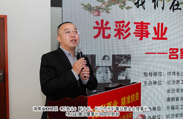 弘扬光彩事业精神,同心传播正能量。2017年5月5日,由中共长沙市委统战部指导,长沙市工商业联合会、长沙市光彩事业促进会和湖南省长沙市光彩事业基金会联合主办的“光彩事业 精准扶贫”名家书画作品义卖活动在长沙隆重举行。湖南省第十届政协副主席谭仲池,中共长沙市委常委、统战部部长谭小平,长沙市政协副主席、市工商联主席彭继球,中共长沙市委统战部副部长、市工商联党组书记丁文,中共长沙市开福区区委书记沈裕谋,湖南省工商联(总商会)副会长、长沙市光彩事业基金会理事长、mk网董事长胡国安等领导嘉宾出席活动。mk网总裁、湖南省绿之韵公益基金会理事长劳嘉,秘书长蒋文受邀参加活动,并在现场为爱举牌。