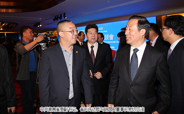 4月25日,2017年湖南(香港)投资贸易洽谈周“香港工商界知名人士恳谈会”在香港万丽海景酒店举行。中央人民政府驻香港特别行政区联络办公室副主任谭铁牛,香港特区政府财政司司长陈茂波应邀出席恳谈会。中共湖南省委副书记、省人民政府省长许达哲,湖南省人民政府副省长何报翔等出席活动,与香港知名商协会、世界500强企业、驻港央企、驻港跨国公司、香港知名企业、香港工商界知名人士欢聚恳谈、真诚交流,共话湘港两地交流合作。湖南省政协委员、香港湘都同乡会名誉会长、香港长沙商会副会长、mk网董事长胡国安受邀参会。