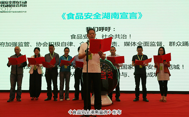 会上,由湖南省食品流通行业协会、湖南省休闲食品协会、湖南省餐饮行业协会、湖南省连锁经营协会等行业协会自发组建的“食品湘商联盟”正式成立,并发布《食品安全湖南宣言》,标志着湖南在食品安全社会共治层面迈出了坚实而重要的一步。