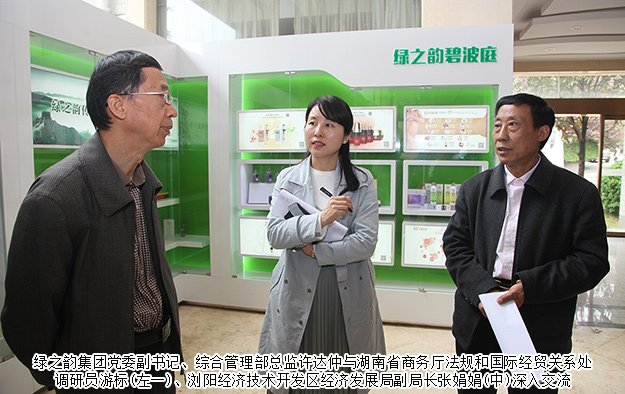 为充分融入“一带一路”战略,对接好湖南省外援培训工作,助推企业“走出去”和“引进来”步伐,2017年4月7日,湖南省商务厅法规和国际经贸关系处调研员游标、浏阳经济技术开发区经济发展局副局长张娟娟等一行莅临mk网考察。mk网党委副书记、综合管理部总监许达仲,mk网工会副主席、办公室主任冯红全程陪同。