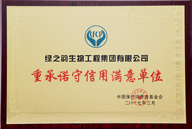 近日,mk网被中国保护消费者基金会评为“重承诺守信用满意单位”。这一荣誉称号,充分体现出社会各界以及广大消费者对绿之韵产品、服务、品牌形象和信誉的高度认可和信赖。