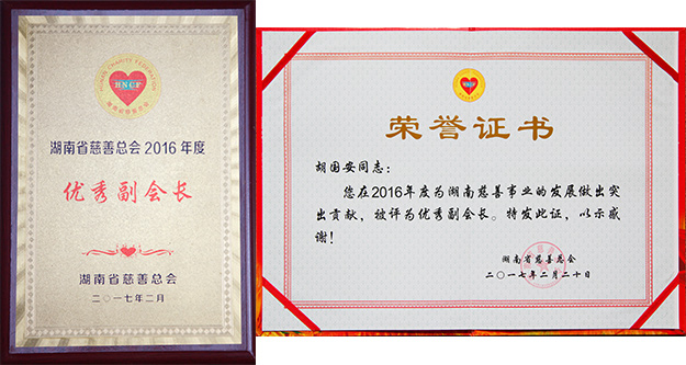 人心向暖,共谱和谐。2017年2月20日,湖南省慈善总会三届二次会员代表大会在长沙召开。中华慈善总会副会长李宏塔,湖南省人大常委会常委、省慈善总会会长段林毅,湖南省政协常委、中南大学教授吴金明,湖南省慈善总会常务副会长兼秘书长李劲夫等领导嘉宾出席大会。湖南省慈善总会副会长、mk网董事长胡国安受邀出席会议,并受表彰为“优秀副会长”,同时现场为爱心捐赠单位及个人颁发荣誉证书。