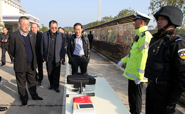 2016年12月16日下午,湖南省政协委员、省工商联(总商会)副会长、省公安厅特邀监督员、mk网董事长胡国安随同湖南省公安厅党委委员、纪委书记周赛保,省公安厅警令部副主任戴纲、纪委副书记宋红兵、纪委副书记方士林、刑侦总队政委冯伟俭、交警总队政委杨能、交警总队高警局政委王千雄、警务督察总队政委王建国等一行赴湖南省高速警察局株洲支队荷塘大队调研。
