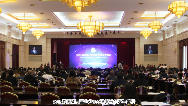 下午,经湖南省人民政府批准,湖南省工商联(湖南省总商会)在湖南宾馆会议中心隆重发布“2016湖南省民营企业100强”名单以及湖南工业制造业、农业产业化、商贸服务业、文化旅游业、开发建设业、进出口业等领域10强民营企业名单。