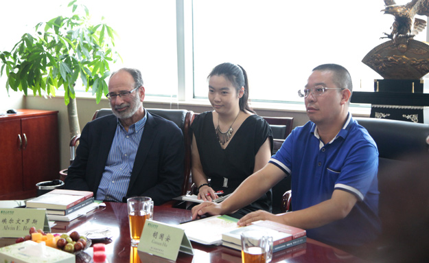 座谈会上,郭力夫主任感谢埃尔文·罗斯教授来到浏阳国家级经济开发区、来到绿之韵考察调研,他表示埃尔文·罗斯教授的关于世界共享经济和经济产业发展如何将资源稳定分配的真知灼见,将对园区适应互联网经济时代发展趋势,制定新经济形势下的战略发展目标有重要作用。胡远江教授进而表示,埃尔文·罗斯教授关于稳定分配理论与市场设计的完美结合不仅对于指导世界经济发展有重要理论作用,对于各种经济组织,尤其对在互联网工具时代,像绿之韵这样的中国企业进行组织架构的重建和对未来市场重新设计和规划都有重要意义。