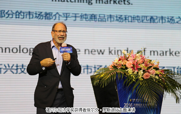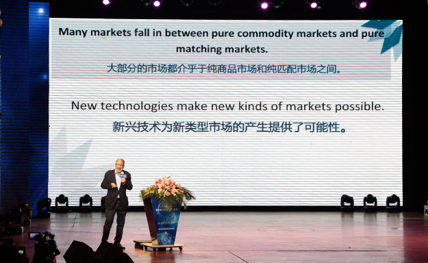 在全场最为热烈与期待的掌声中,埃尔文·罗斯教授带来了“共享经济与市场设计”主题演讲,他向观众展示了他的最新研究成果,提出了“共享经济时代,市场设计的核心在于匹配的稳定”的理论,并通过案例深刻解析了“匹配市场”如何进行市场分配以达到优化市场资源配置,提高市场运行的效率。