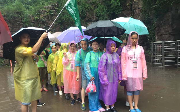 天公不作美,进入武陵源景区后,张家界下起了雨,家人们纷纷穿上了五颜六色的雨衣,为浓郁的森林添加了一抹亮丽的风采。在确保安全的情况下,绿之韵的家人们都不惧风雨,跨越过七千多级台阶,走完了全程,每个脚印都镌刻着绿之韵人的坚毅!一位营销精英说道:“来张家界随时都有山看,可是雨中张家界,如此云雾缭绕的仙境实在难得!”