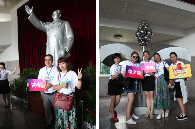 第二站,我们来到了为纪念毛泽东诞辰一百周年而修建的神奇的毛主席铜像广场,主席身躯伟岸,手握书卷,学者风范。营销精英们庄严肃穆,携着花篮,虔诚鞠躬,默默将心中的愿望与主席分享,希望美愿成真!