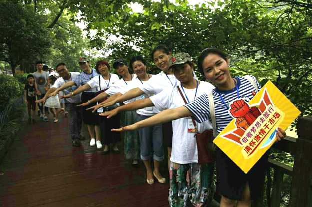 “一钩流水一拳山,虎踞龙盘在此间;灵秀聚钟人莫识,石桥如锁几重关。”此诗描绘的就是我们最后一站——滴水洞。这里竹木繁茂,山涧流水潺潺,煞是凉爽。营销精英们纷纷卸下疲惫、放慢脚步与美景合影。