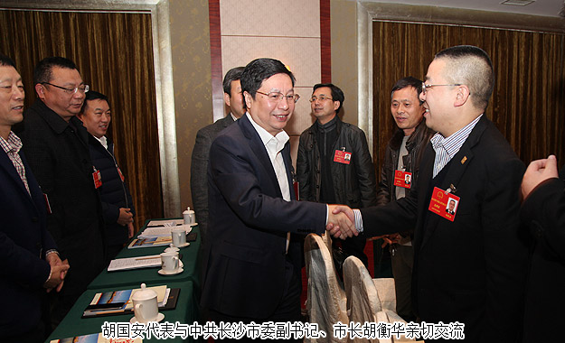 大会开幕式后,中共湖南省委常委、长沙市委书记易炼红,长沙市委副书记、市长胡衡华,长沙市人大常委会主任袁观清等来到代表驻地,看望参加长沙市十四届人大四次会议的全体代表,鼓励大家畅所欲言、献计献策。胡国安代表与各位领导、代表座谈时发言,“在今年的政府工作报告中,市委市政府始终围绕“创新、协调、绿色、开放、共享”八个字做文章,尤其是关于民生、精准扶贫的篇幅很大,让人倍感务实和与时俱进,给人很强的信心。市委市政府着力推进浏阳河生态经济带建设的整体思路与mk网的绿色、生态经济发展思路,以及在浏阳河与捞刀河畔建立生态休闲园、建立五星级生态酒店等未来发展规划不谋而合,这充分体现了市委市政府决策的前瞻性和绿之韵规划的正确性。同时,这次会议在承前启后的特殊时期召开,可谓意义特别重大。如何谋划好‘十三五’发展,实现好‘十三五’的精彩开局和开门红,是我们所有人大代表十分关切、十分关心的问题。mk网将紧紧团结在市委、市政府周围,抢抓机遇,加快发展,为努力建设能量更大、实力更强、城乡更美、民生更爽的长沙,贡献自己应有的力量!”