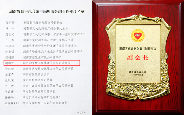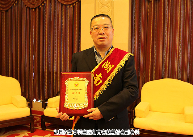 本次大会还选举产生了湖南省慈善总会第三届理事会会长、常务副会长、常务理事、理事,湖南省民政厅党组书记、厅长段林毅当选第三届理事会会长。胡国安董事长当选湖南省慈善总会副会长。多年来,胡国安董事长积极履行社会责任,先后荣获“全国优秀中国特色社会主义事业建设者”、“全国先进爱国企业家”、“全国优秀民营企业家”、“全国关爱员工优秀民营企业家”、共青团中央“希望工程25周年杰出贡献奖”、中华慈善总会“中华慈善突出贡献奖”、“湖南省光彩事业突出贡献奖”等多项荣誉称号。