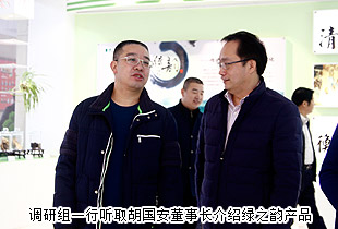 调研组一行首先参观了mk网大楼,听取了胡国安董事长对绿之韵系列产品、集团总部办公区、企业资质和荣誉展示区的介绍。绿之韵“以产品为导向的体验式营销模式”和“移动互联网+直销”的发展战略,优质的产品研发体系、产学研合作模式以及良好的企业形象得到了考察组各位领导的高度认可和赞誉。
