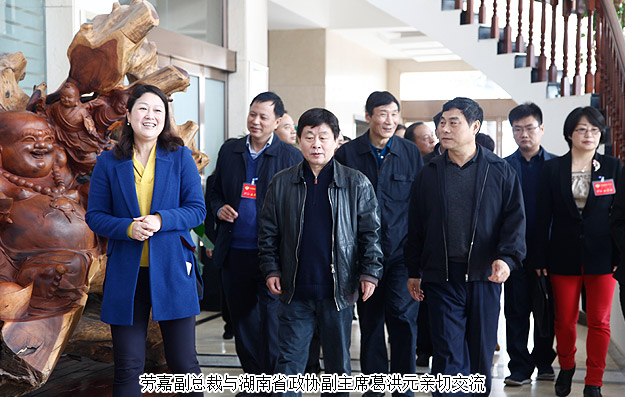 会后,湖南省政协副主席葛洪元等领导一行来到绿之韵进行参观指导。在mk网董事长胡国安、董事常务副总裁劳嘉的陪同下,考察组一行首先参观了mk网大楼,听取了劳嘉副总裁对绿之韵系列产品、集团总部办公区、企业资质和荣誉展示区的介绍。绿之韵“以产品为导向”和“互联网+大健康产业”的发展战略,优质的产品研发体系和良好的企业形象得到了考察组各位领导的高度认可和赞誉。
