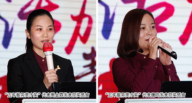 表彰是鼓励,是鞭策,更是一路前行的里程碑。“五年服务英才奖”代表周金霖、唐鸣巾帼不让须眉,将她们从业以来的优秀经验毫无保留的分享给全体员工,并且告诉大家要始终以一颗感恩的心、积极奋进的心态投入到工作中,并且秉持信念不断付出行动,必将得到不仅是物质上、更是精神上的大回报;“十年服务忠诚奖”代表王薇就专业度,服务意识、行动的力量为大家进行了专业深度的分享。全体员工聆听优秀员工的精彩分享,让个人智慧凝结成绿之韵全体的共同力量。
