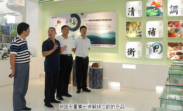 调研组一行首先参观了mk网大楼,听取了胡国安董事长对绿之韵系列产品、集团总部办公区、企业资质和荣誉展示区的介绍。绿之韵“以产品为导向”和“移动互联网+直销”的发展战略,优质的产品研发体系和良好的企业形象得到了考察组各位领导的高度认可和赞誉。