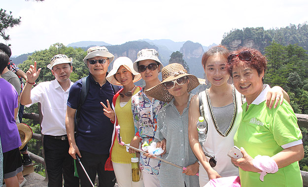行程第三天,绿之韵家人们迎来了游览张家界国家森林公园的激情挑战。从袁家界到十里画廊,绿之韵的家人们拾级而上,相互鼓励,跨越过七千多级台阶,冒着烈日,走完了全程,在攀爬的整个过程中,每个脚印都镌刻着绿之韵人的坚毅!袁家界作为电影《阿凡达》场景里面原始森林和高耸入云的山峰的取景拍摄原形,有天下第一桥、九云天梯、八卦图、猿人望月、拜仙台等秀丽景点。家人们背靠着电影《阿凡达》里“哈利路亚山”,在这里合影,感受成为电影主人公的乐趣。天子山是武陵源区四大风景之一,这里不但有奇山秀水,还有淳朴的民情,奇特的民俗、独具风味的民族食品等待着绿之韵家人的到来。十里画廊位于索溪峪自然保护区,绿之韵的家人们坐着轰隆轰隆的游览小火车,听着导游的详细讲解,进入了十里画廊的奇妙世界,沿途的转阁楼、寿星迎宾、采药老人、两面钟……“人游山峡里,宛如画图中”,家人们完全被神奇的张家界所折服。