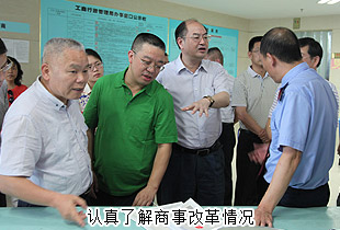 按照湖南省政府工作部署,湖南在全省启动注册资本登记制度改革,同时将长沙、郴州列为工商登记前置审批制度改革试点城市,并在永州、郴州两地试点“三证合一”(工商营业执照、组织机构代码证、税务登记证)登记制度改革。2015年6月2-5日,湖南省政协常委、经科委主任吴金明,省政协常委、财政部驻湘监察专员周伟华,省政协委员 、省工商局特邀民主监督员、mk网董事长胡国安等一行赴郴州、永州调研“商事制度改革”,并认真听取了各地工商局商事制度改度工作情况汇报。湖南省工商商局副局长阳芳华、省工商局注册局副局长潘晓峰等陪同调研。