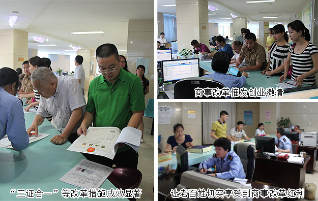为深入收集商事改革成果第一手资料,调研重点选在郴州市宜章县,永州市宁远县两地进行。郴州市政协副主席陈方敏、市工商局长杨志平、永州市政协副主席张建亮、市工商局局长张国政、宜章县委书记欧阳锋、宁远县委书记刘卫华等当地主要领导陪同调研。在调研中,胡国安委员一行现场考察了宜章县工商局政务中心、南京洞工商所、宁远县工商局,城南工商所以及当地各代表企业,全面了解商事制度改革工作情况。自2014年实施商事制度改革以来,两地不断深化行政审批制度改革,完善市场营商环境,极大地激发了民众投资创业热情,据统计,仅宜章县一地,2014年全县新增各类市场主体4438户,增长38.82%,新增企业注册资本20.97亿元,增长59.27%,新增中小微企业325户。2015年1-5月新增市场主体1046户。“三证合一”为经营者带来了更多便利,市场准入效能大幅提升,行政综合审批效能提高70%以上。