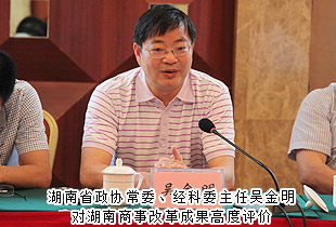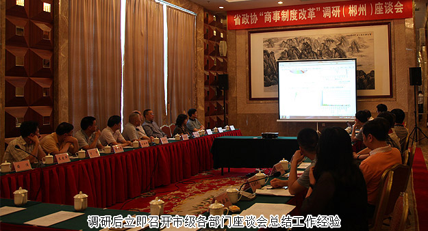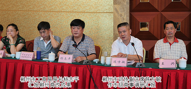在郴州市举行的调研座谈会上,郴州市工商局局长杨志平从登记制度改革、商事登记信息共享及监管平台、商事主体信息公示平台以及商事主任信用约束体系等方面取得的成绩对郴州市商事制度改革作了重点工作情况汇报。市政务服务中心、电子政务信息中心、质监局、国税局、地税局等管理部门的分管领导也跳跃发言,汇报改革成果以及下一步工作思路。吴金明充分肯定了湖南省商事登记制度改革的工作成效,认为改革中体现出思路新、力度大、措施实、效果明显。湖南的商改工作不仅在全省起了引领作用,而且走在了全国前列,为企业发展带来了便利条件,省政协将继续关注商改,为商改顺利推进积极建言献策。湖南省工商局副局长阳芳华督促各市县工商部门继续有力推进,全面铺开,使商事登记制度改革效果更加明显。