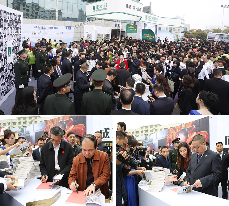新书发布仪式上,胡国安董事长分批将亲笔签名的《成功之路》送给入选此书的创业精英代表们。签售展区前,近4000名绿之韵家人和伙伴的到来让现场排起了长龙,签售气氛异常火爆。看到每一位绿之韵家人,胡国安董事长都报以亲切微笑,签字、握手、合影……不到一个小时,近2000多册《成功之路》就抢售一空。